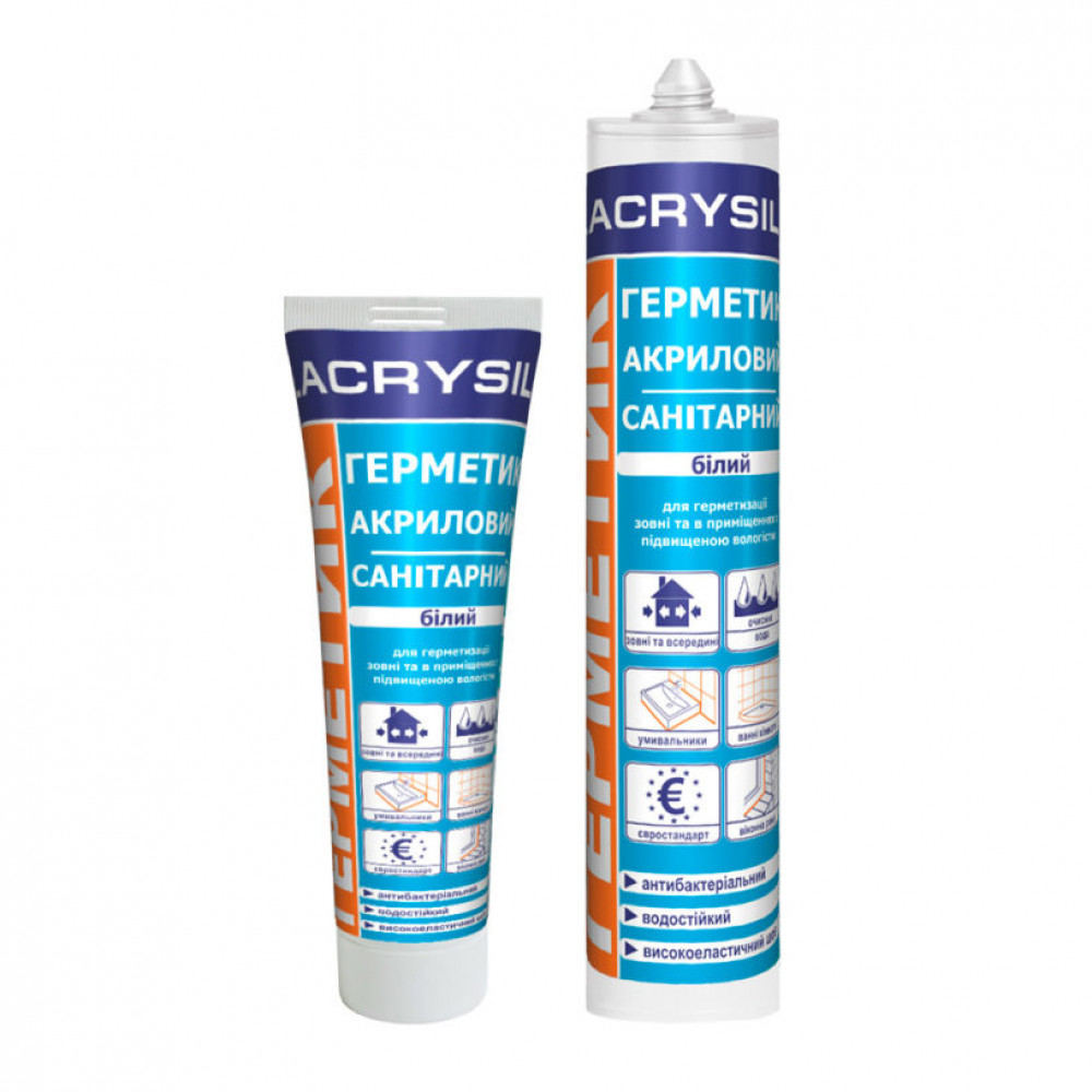 Герметик санітарний білий ЛАКРІСІЛ (Lacrysil) володіє унікальним складом, який ефективно працює на пористих і гладких поверхнях. Акрилова основа проявляє високу адгезію, міцність шва і вологостійкість. З його допомогою можна ущільнювати шви конструкцій, а також заповнювати дрібні тріщини і дефекти поверхонь. Висока вологостійкість і безпечний склад герметика дозволяють використовувати його при внутрішніх і зовнішніх роботах. У процесі висихання продукт не дає усадки і тріщин, а після висихання шов зберігає еластичність. До складу герметика входять антисептичні компоненти, що перешкоджають виникненню цвілі і грибка, таким чином, з ним можна працювати в умовах постійної підвищеної вологості (кухні, ванні кімнати, санвузли).