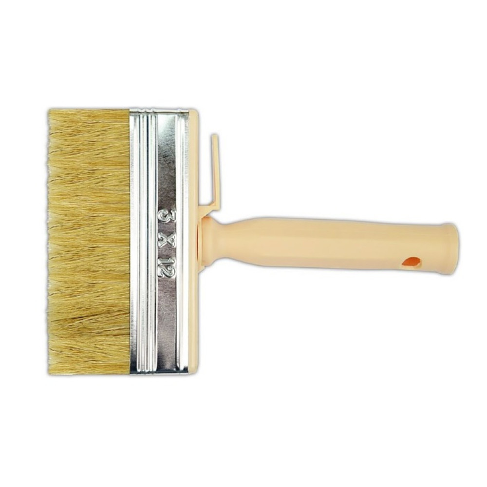 Пензель-макловиця Farbex - це інструмент, який дозволяє наносити ґрунтовку, клей або лак рівним шаром на великі поверхні без зайвого розбризкування. Щетина надійно закріплена металевим обтиском, а пластикова ручка з петлею та внутрішнім отвором дозволяє зручно використовувати телескопічну вудку та підвішувати пензель на відро під час роботи – все продумано до дрібниць.