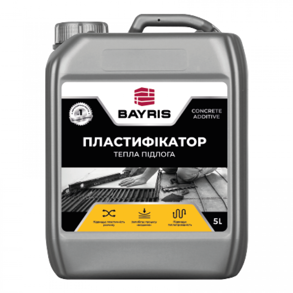 Пластифікатор Байріс "Тепла підлога" використовується при облаштуванні стяжок та наливних підлог (у тому числі в системах підлог з підігрівом). Пластифікатор на 15% знижує водоспоживання розчину та дозволяє сформувати пластичний однорідний шар. Готовий розчин не розшаровується і легко виводить бульбашки повітря, утворюючи міцну та гладку поверхню підлоги. Крім того, введення пластифікатора покращує теплопровідність та рівномірно розподіляє тепло в системах підлог з підігрівом. Пластифікатор вводиться в будівельні суміші разом із водою та ретельно перемішується.
